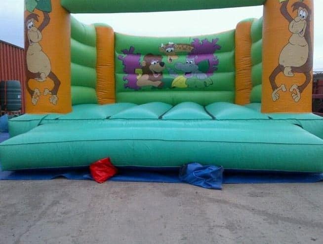 If your child loves Jungle animals, then they will have so much fun bouncing around on this Jungle Themed Bouncy Castle. Our Jungle Themed bouncy castle is one of our most popular as its perfect for parties etc including both boys and girls. This bouncy castle has pictures of Jungle animals on the front. This castle is perfect for birthdays, BBQ or just a treat for the kids. This Bouncy Castle is ideal for both boys and girls aged 2 to 12 years old and comes with NO !!! rain cover. Includes pegs, electric blower and mats. Also ideal for indoor use.