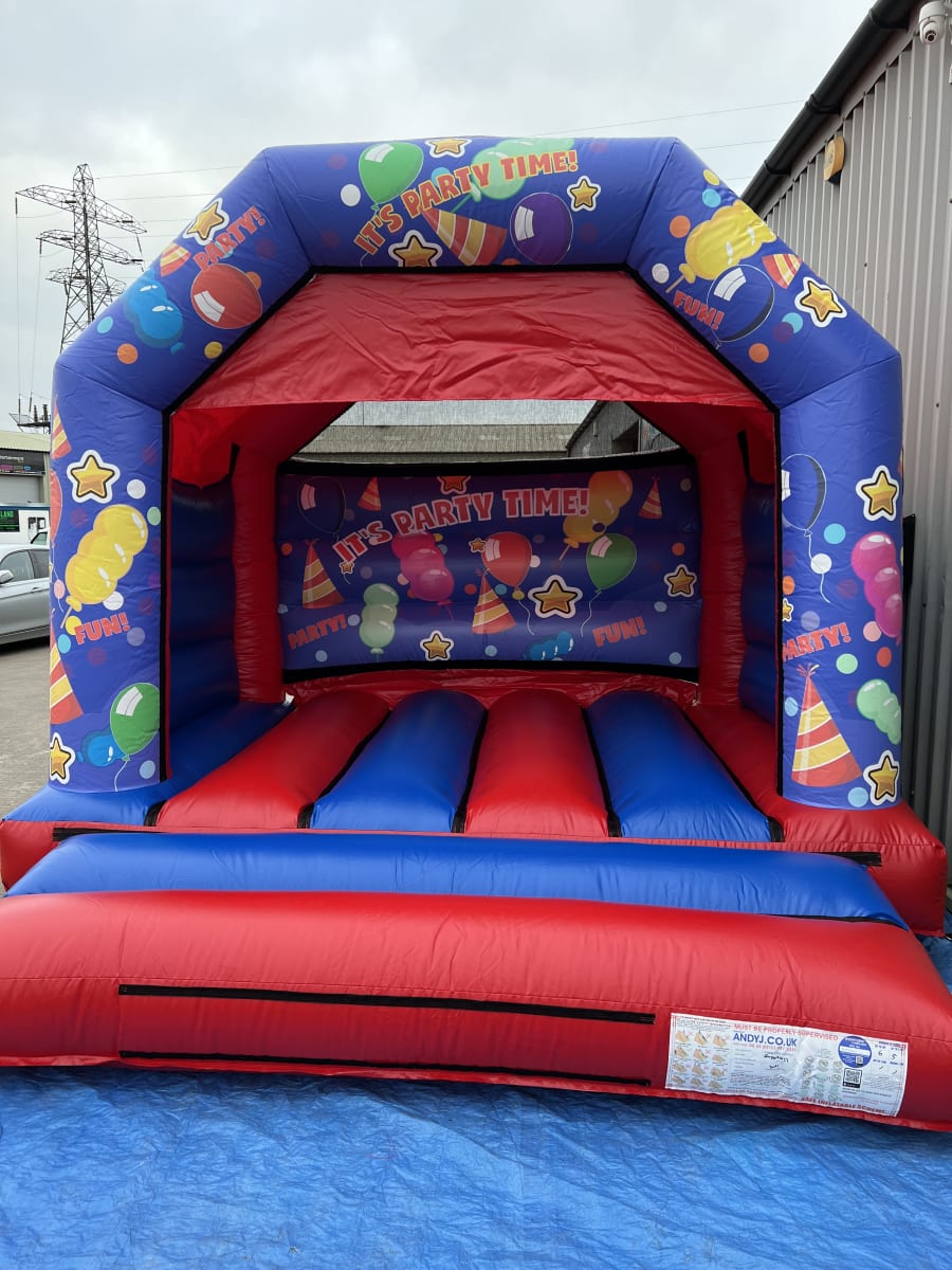 A framed balloon themed bouncy castle suitable for children being 12ft wide is a great size for all those gardens parties